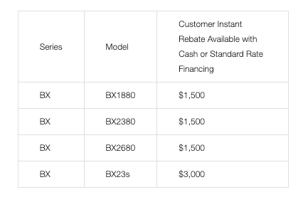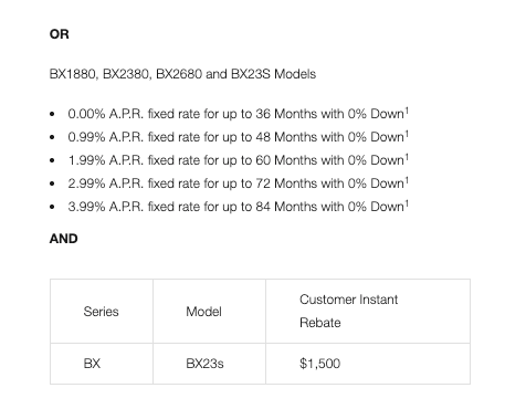 0% APR AVAILABLE OR SAVE UP TO $3000 ON BX SERIES TRACTORS!