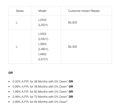 0% APR AVAILABLE OR SAVE UP TO $2500 ON STANDARD L TRACTORS!