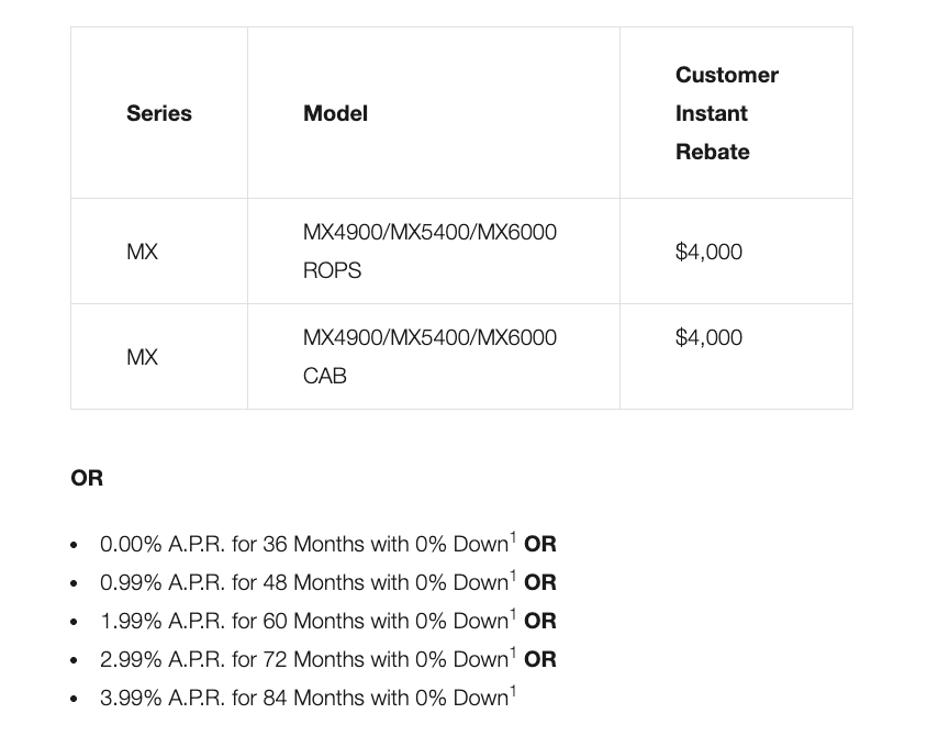 0% APR AVAILABLE OR SAVE UP TO $4,000 ON UTILITY TRACTORS (MX)!