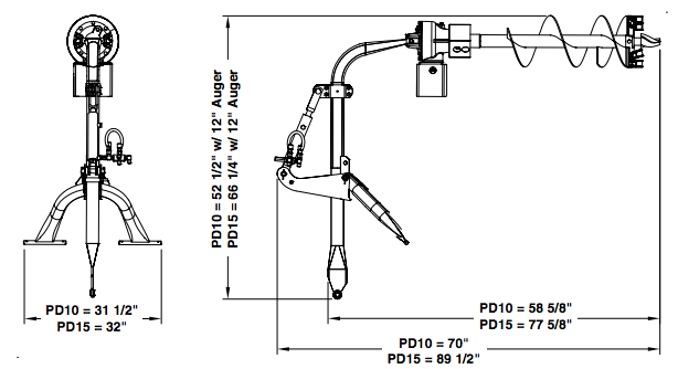 The PD15 Series Post Hole Diggers are designed for Category 1 three-point attachment, offers a 48" auger length and a choice of 6", 9", or 12" auger flights with cast steel fishtail tips. Landscapers, rental yards, contractors, farmers, ranchers, and homeowner will find that the PD15 meets their general duty needs and applications.